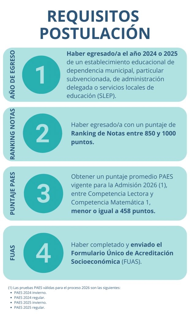 Para el Proceso de Admisión 2026, quienes ingresen a carreras de pedagogía deben considerar que, según la ley N° 20.903 que crea el Sistema de Desarrollo Profesional Docente, los postulantes deben cumplir con ciertos requisitos mínimos, los que serán distintos según el tipo de programa al que busque ingresar.
